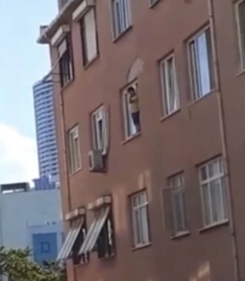 Kartal’da küçük bir çocuk, apartmanın 4’üncü katındaki evin camına çıkarak mermerin üzerinde durdu. Çocuğun camdaki tehlikeli oyunu görenlerin yüreğini ağza getirirken, o anlar bir vatandaşın cep telefonu kamerasına yansıdı.