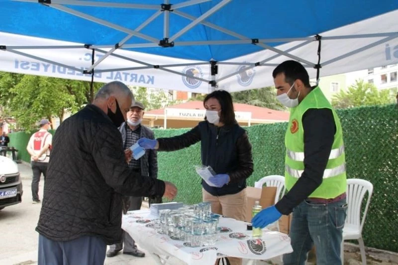 Koronavirüs salgınından korunmak amacıyla 16 Mart’ta toplu ibadete ara verilmesi kararlaştırılan camilerin, yaklaşık iki buçuk ayın ardından bugün tekrar ibadete açılması ile birlikte harekete geçen Kartal Belediyesi, Cuma namazını kılmaya gelen vatandaşlara sağlık kitleri dağıttı.