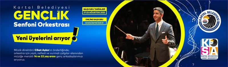 Kartal Belediye Başkanı Gökhan Yüksel’in öncülüğünde kurulan ve ünlü keman virtüözü, besteci, akademisyen Cihat Aşkın’ın müzik direktörlüğünü yaptığı Gençlik Senfoni Orkestrası’nda; yaylı, nefesli ve vurmalı çalgılar alanında 14 ve 22 yaş arası gençler eğitim alabilecek.