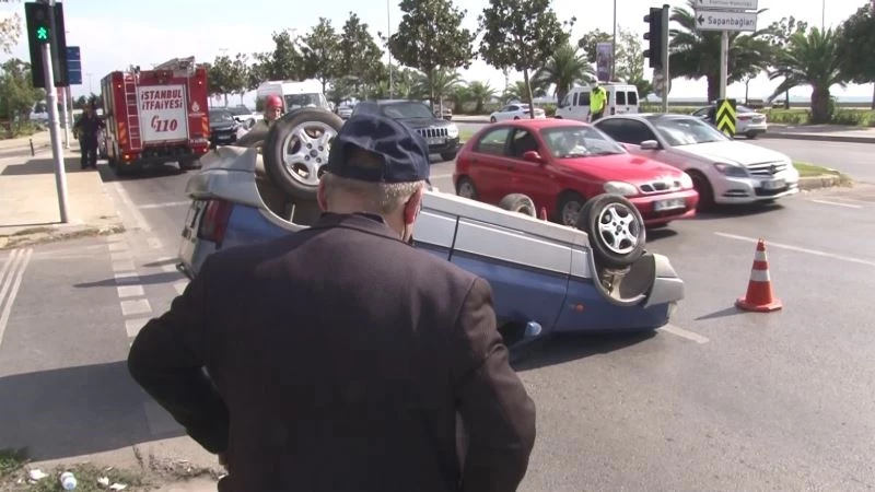 İstanbul Kartal sahil yolunda ilerleyen otomobil sürücüsü önündeki araç sarı ışıkta durunca araca çarpmamak için bir anda direksiyon kırdı. Kontrolden çıkan araç takla atarken, araç sürücüsü kazayı şans eseri burnu bile kanamadan atlattı.