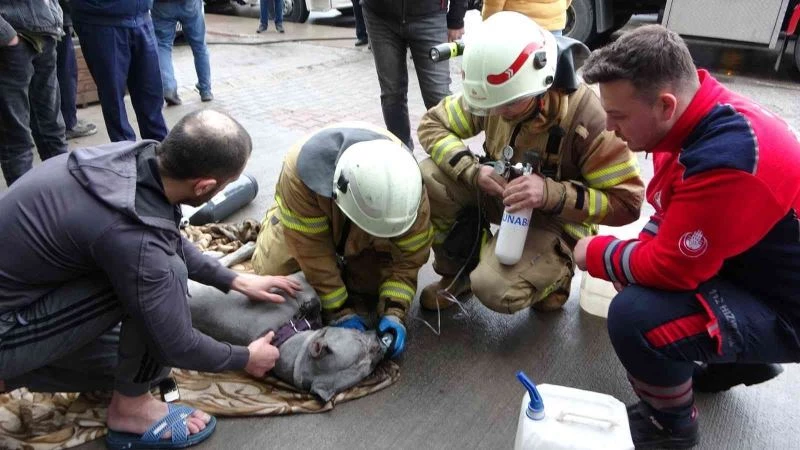 Kartal’da yangında kurtarılan köpeğe oksijenle müdahale edildi