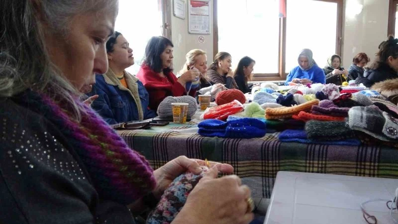 Kartallı kadınlar depremzede çocuklar üşümesin diye atkı bere örüyor