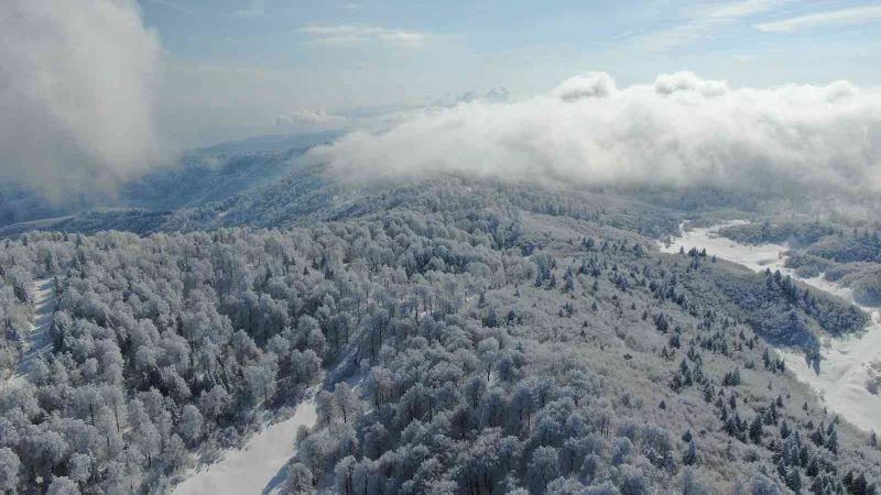 Samanlı Dağları arasında bulunan Kartepe’nin kar manzarası, drone ile havadan da görüntülendi.