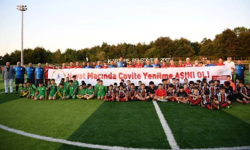 Ayrıca Kartepe Şöhretler Futbol Turnuvası sonunda tüm dünyayı etkisi altına alan Covid-19’a karşı aşı olmanın önemine dikkat çekmek amacıyla “Hayat maçında Covite yenilme aşını ol” yazılı pankart açıldı.