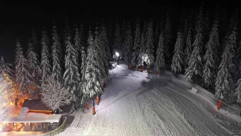 Hava sıcaklıklarının düştüğü Kartepe’de etkili olan kar, kartpostallık görüntüler de ortaya çıkardı. Kar kalınlığının 40 santimetreye ulaştığı Kartepe’de akşam manzarası drone ile havadan görüntülendi.
