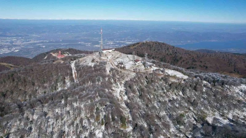 Kocaeli’nin en yüksek zirvelerinden Kartepe’ye mevsimin ilk karı düştü. Sezonun ilk karı havadan drone ile görüntülendi.