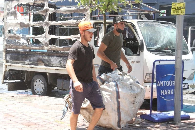 Olay, Konyaaltı ilçesi Gürsu Mahallesi, Atatürk Bulvarı üzerinde gerçekleşti. Edinilen bilgiye göre, Suriye uyruklu İsa Elhammud (28) idaresindeki 31 MB 5471 plakalı kamyonetten seyir halindeyken dumanlar çıkmaya başladı. Diğer araçların korna çalması ile Elhammud, durumu fark edip aracı kenara çekti. Araçtan çıkan dumanlar birden aleve dönüşerek tüm kamyoneti sardı. Kamyonet, içerisinde bulunan karton ve kağıtlar ile birlikte kullanılamaz hale geldi. Yangında, can kaybı yaşanmadı. Kamyonetin alev alev yanma anları ise vatandaşın cep telefonu kamerasına yansıdı. İsa Elhammud, “Karton vardı hepsi yandı. Arabayı 6 ay önce satın almıştım. Maddi zararım ne kadar bilmiyorum” dedi.