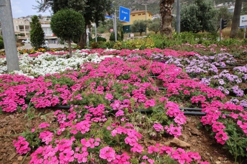 Kaş Belediyesi peyzaj düzenlemeleri ile ilçeyi güzelleştiriyor. Salgın nedeniyle sakin günler yaşanan ilçenin cadde, sokak, refüj ve parklarını adeta çiçek bahçesine dönüştürüyor.