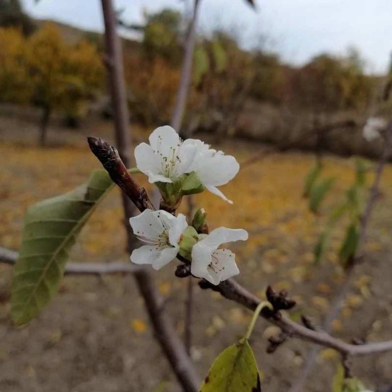 Taşova’da bulunan bir meyve bahçesinde bulunan kiraz ağacı havaların sıcak gitmesi üzerine tekrar çiçek açtı.
