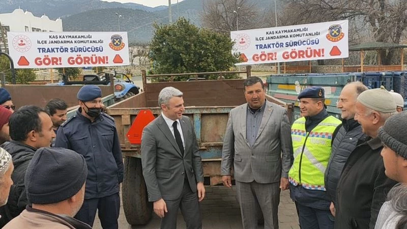 Antalya İl Jandarma Komutanlığına bağlı Kaş İlçe Jandarma Komutanlığı Trafik Timlerince, Kaş İlçesinde meydana gelen traktör kazalarını azalmak amacıyla ‘Reflektör tak görünür ol, kazaya sebep olma’ projesi kapsamında Kaş Kaymakamı Şaban Arda Yazıcı’ nın katılımıyla 80 traktör sürücüsüne Kaş Kaymakamlığınca temin edilen reflektörler dağıtıldı.