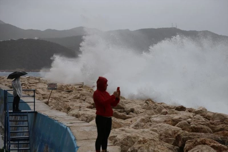 Meteoroloji 4. Bölge Müdürlüğünün verilerine göre, ilçede saatteki hızı 50-75 kilometre arasında olduğu tahmin edilen fırtına nedeniyle, Kaş Limanı'ndaki dalgakıranda 7-8 metrelik dalgalar görüldü.