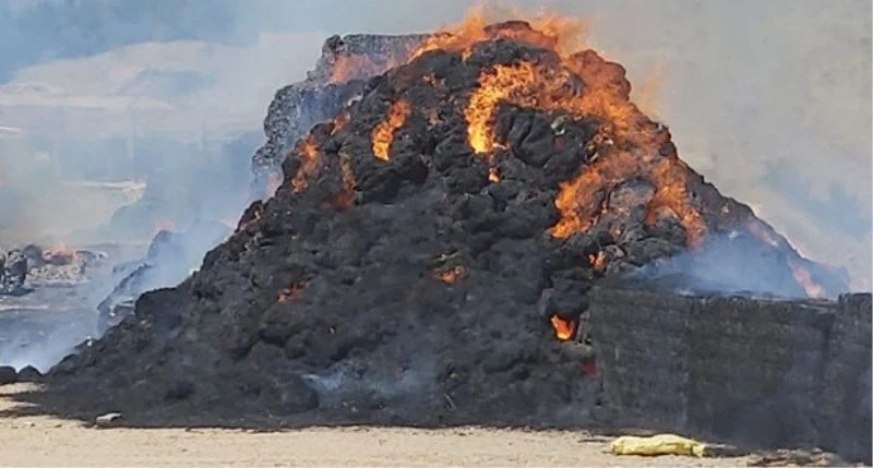 Kastamonu’da 150 ton saman balyası alev alev yandı