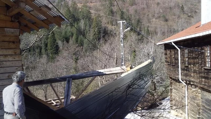 Kastamonu’da etkili olan fırtına, ağaçları yıktı, çatıları uçurdu, enerji nakil hatlarını kopardı.