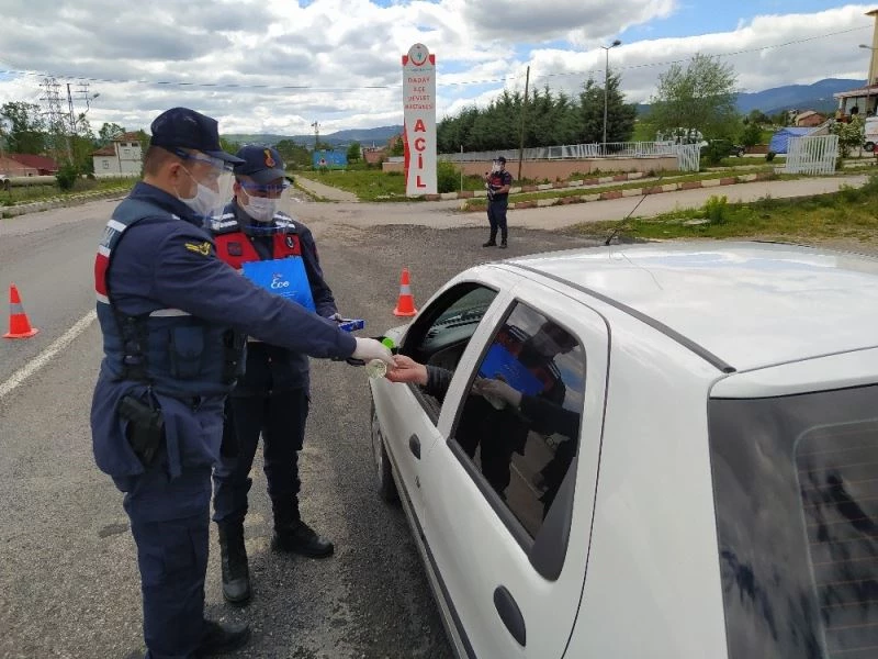 Kastamonu’nun Daday ilçesinde Ramazan Bayramı dolayısıyla trafik denetimi yapan Daday İlçe Jandarma Komutanlığı ekipleri, izinli olarak dışarı çıkan sürücülerin Ramazan Bayramı’nı kutlayarak, şeker ve kolonya ikram etti.