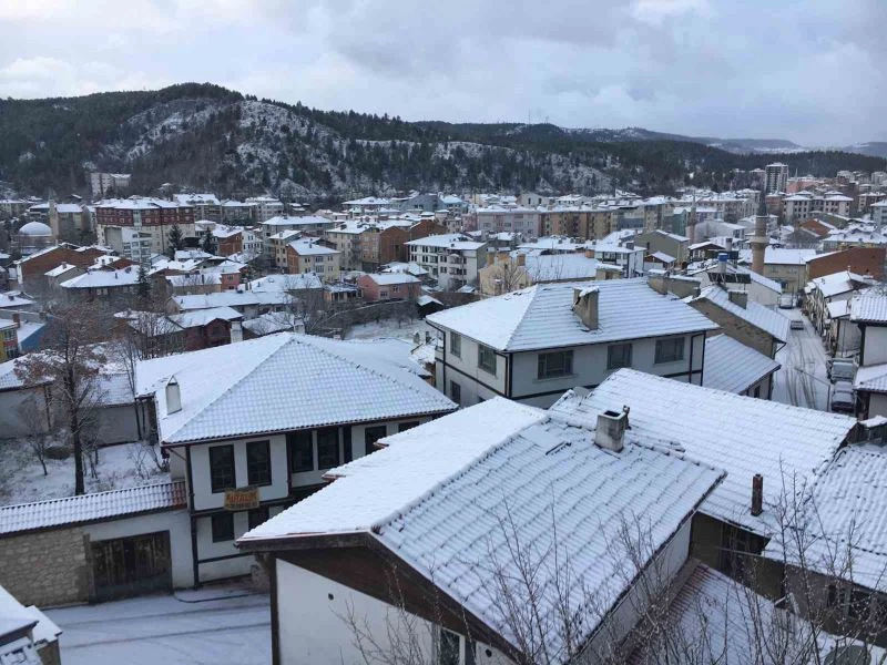 Kastamonu’da gece saatlerinde yağan kar, etkisini yoğun bir şekilde artırarak kısa sürede cadde ve sokaklar ile binaların çatılarını beyaza bürüdü.