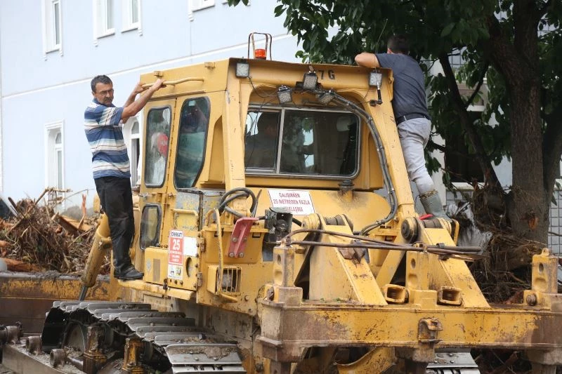 Bozkurt’un çamur deryasına dönen sokağında mahsur kalan bir grup vatandaş da bölgeye sevk edilen belediye dozeri ile kurtarıldı.