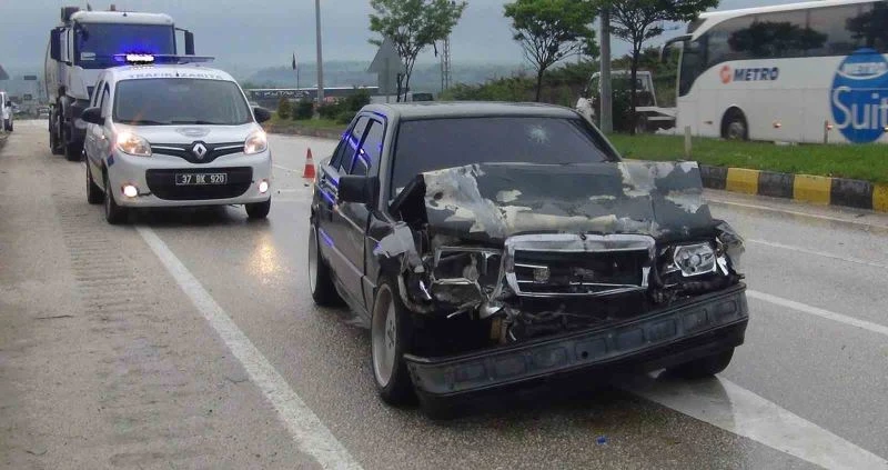 Kastamonu’da tıra arkadan çarpan otomobilde bulunan 2 kişi yaralandı.