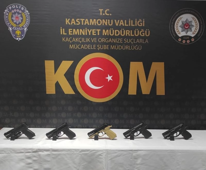 Kastamonu İl Emniyet Müdürlüğü Kaçakçılık ve Organize Suçlarla Mücadele Şube Müdürlüğünce silah kaçakçılarına yönelik gerçekleştirilen operasyonda, 5 adet ruhsatsız tabanca ele gerilirken 2 şüpheli şahıs tutuklandı.