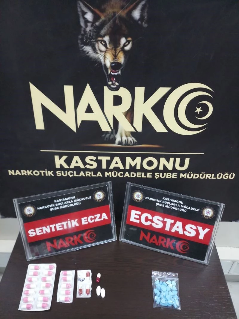 Edinilen bilgiye göre, Kastamonu İl Emniyet Müdürlüğü Narkotik Suçlarla Mücadele Şube Müdürlüğü görevlilerince uyuşturucu madde kullanan ve satan şahıslara yönelik çalışmalar çerçevesinde gerçekleştirilen operasyonda farklı miktarlarda ecstasy ve reçeteye tabi hap ele geçirildi. Konuyla ilgili olarak 2 şüpheli şahıs, ilgili işlemler için Emniyet Müdürlüğüne intikal ettirildi. Olayla ilgili soruşturma devam ediyor.