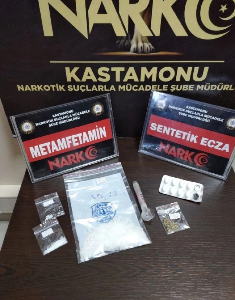 Edinilen bilgiye göre, Kastamonu İl Emniyet Müdürlüğü Narkotik Suçlarla Mücadele Şube Müdürlüğü ekipleri tarafından Kastamonu’da uyuşturucu madde kullanan ve satan şahıslara yönelik operasyon düzenlendi. Gerçekleştirilen operasyonda değişik miktarlarda metamfetamin maddesi, reçeteye tabi hap, kenevir tohumu ve uyuşturucu içiminde kullanılan düzenek ele geçirildi.