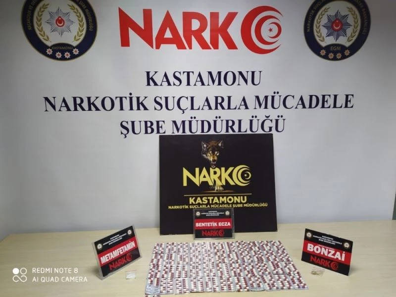 Kastamonu polisi tarafından düzenlenen iki operasyonda, reçeteye tabi hap ile bonzai, metamfetamin, kubar esrar, ecstasy hap ele geçirilirken, 3 kişi gözaltına alındı.