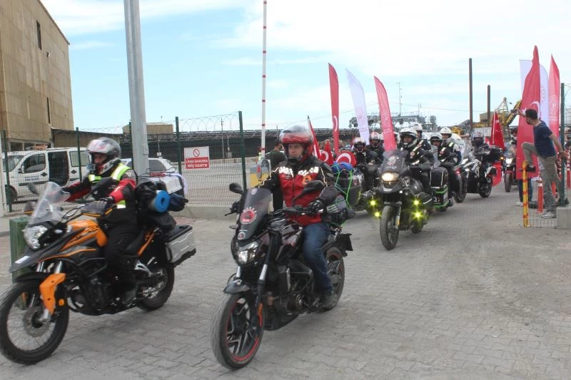 Türk bayrakları ile donatılan motosiklet sürücüleri, İnebolu’dan alkışlar eşliğinde Ankara’ya uğurlandı.