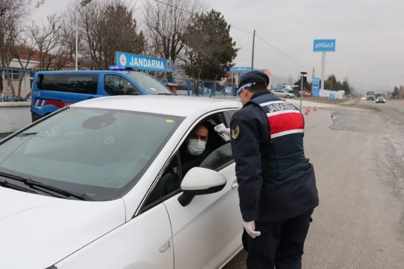 Taşköprü-Kastamonu karayolu Bük köyü mevkisindeki kontrol noktasında denetimlerini sürdüren jandarma ekipleri, il dışından gelen araçları durdurarak, sürücü ile yolcuların ateşini ölçtü, kimlik kontrollerini yaptı.