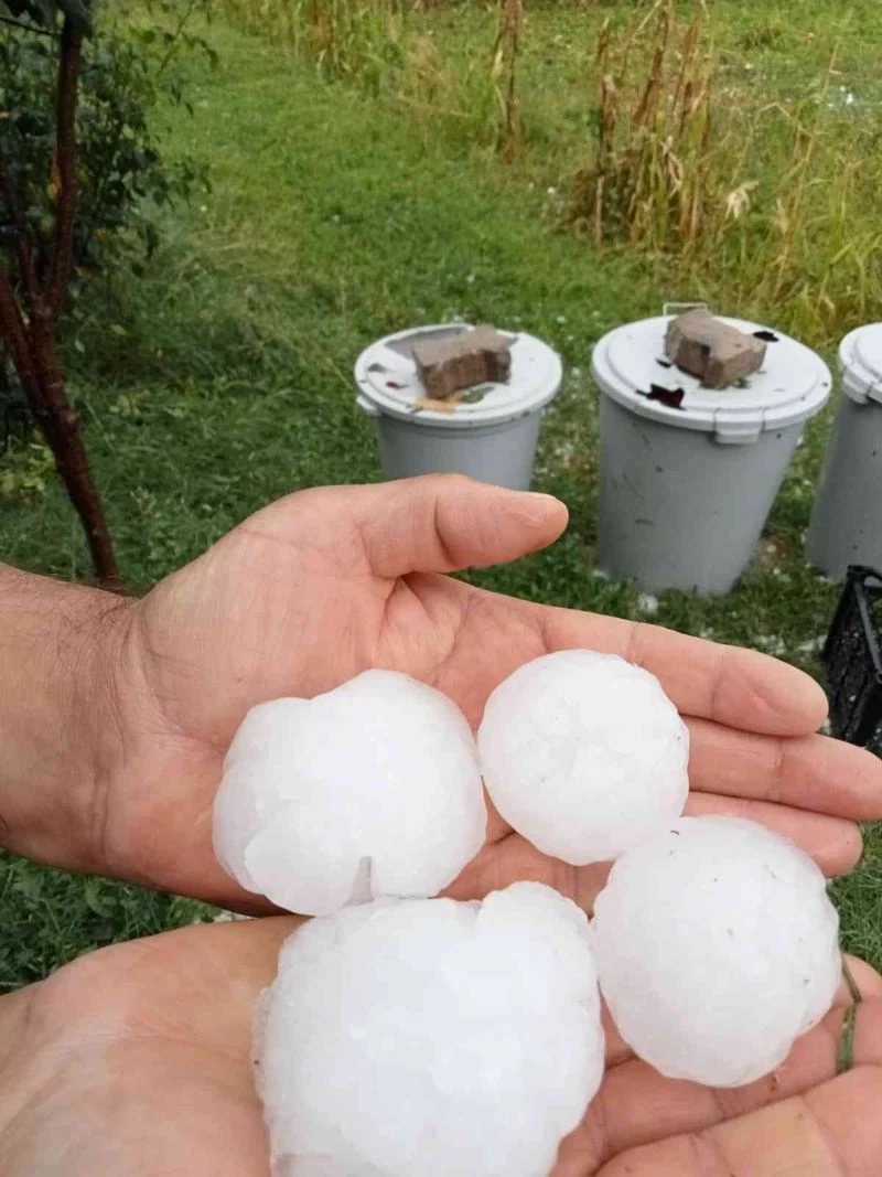 Kastamonu’nun Taşköprü ilçesinde patates büyüklüğünde dolu yağdı.