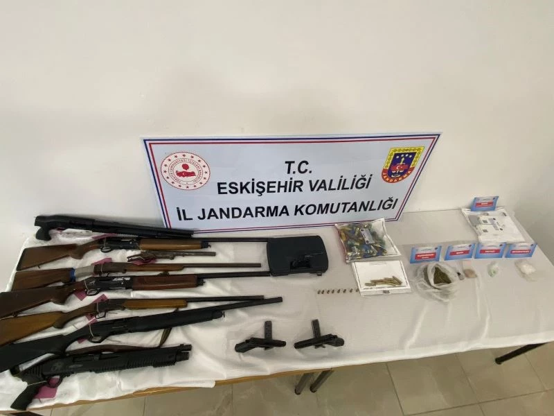 Eskişehir’de kasten yaralama suçundan aranması olduğu için yakalanan şahsın evinde çok miktarda uyuşturucu madde, silah ve av tüfeği ele geçirildi.