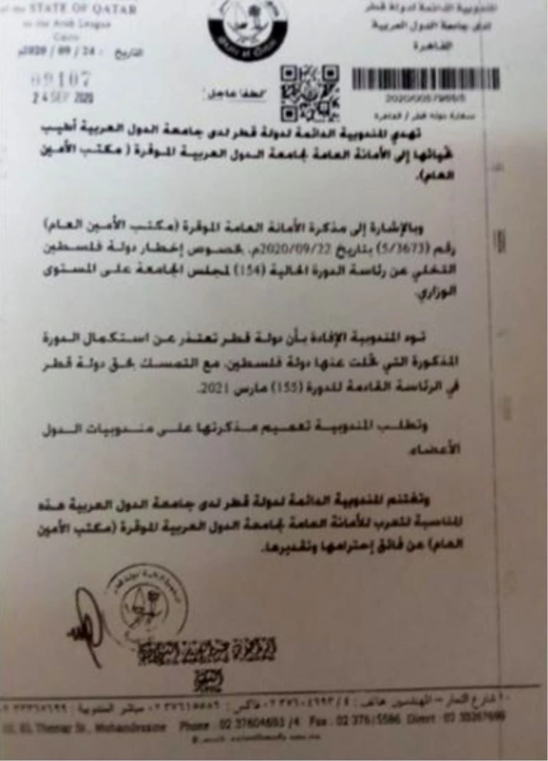 Katar’ın, daha önce Arap Birliği Konseyi Toplantısı Başkanlığını gelecek yıl devralması bekleniyordu.