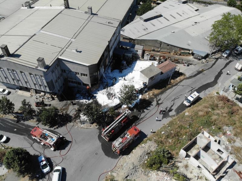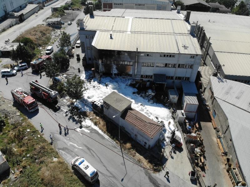 Esenyurt’ta bulunan kauçuk fabrikasının bahçesinde bilinmeyen bir nedenle yangın çıktı. Fabrikada bulunan 2 işçi dumandan etkilenirken, itfaiye ekiplerinin çalışması ise havadan görüntülendi.