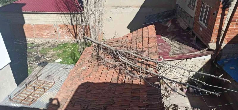Olay, Cumhuriyet Mahallesi üzerinde bulunan bir evin bahçesinde bulunan kavak ağacı kırılarak çatıya düştü. Enver Diler’e ait evin bahçesinde bulunan kavak ağacı rüzgar nedeniyle kırıldı. Kırılan ağaç tek katlı bir evin üzerine düştü. Üzerine düştüğü çatıda maddi hasar meydana geldi. Kavak ağacı daha sonra vatandaşlar tarafından hızar ile kesilerek çatıdan alındı.