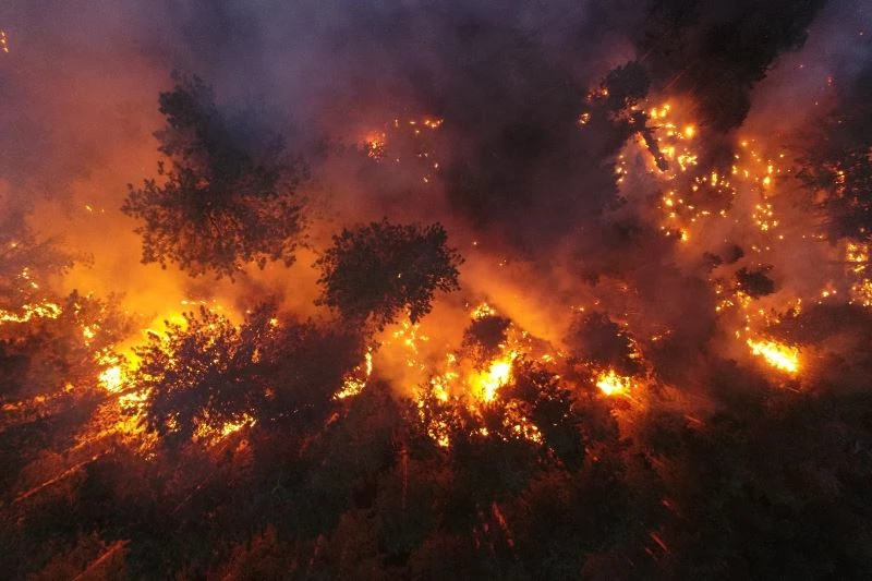 Öte yandan geceyi aydınlatan yangın havadan görüntülendi.
