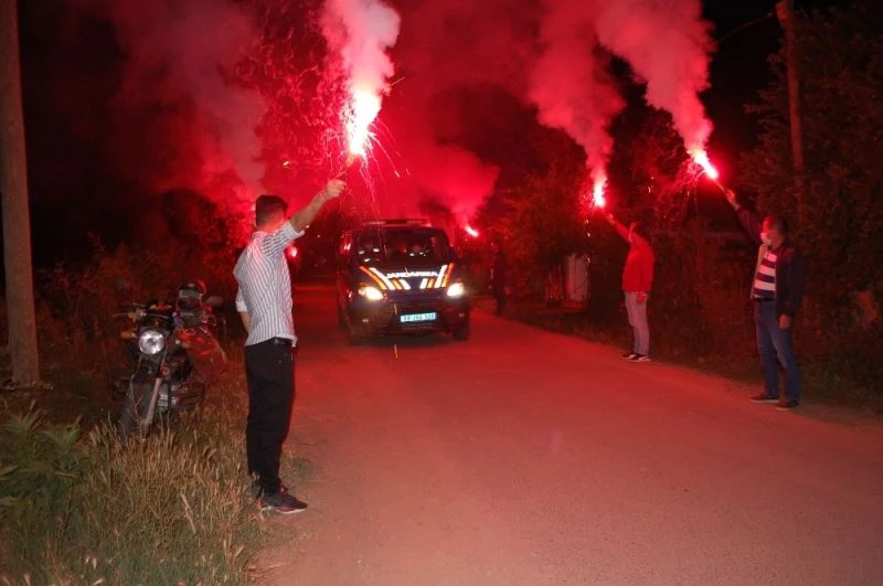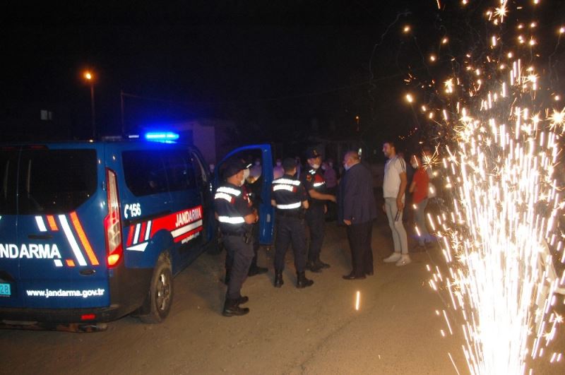 Gönence Mahallesi’nde telefonla aranan 156’ya, ‘gençler arasında kavga var’ ihbarı verildi. Kısa sürede mahalleye gelen jandarma ekipleri ilginç bir görüntüyle karşılaştı. Vatandaşlar, jandarma ekiplerini, pasta ve meşalelerle karşılayarak, sevgi gösterisinde bulundu.