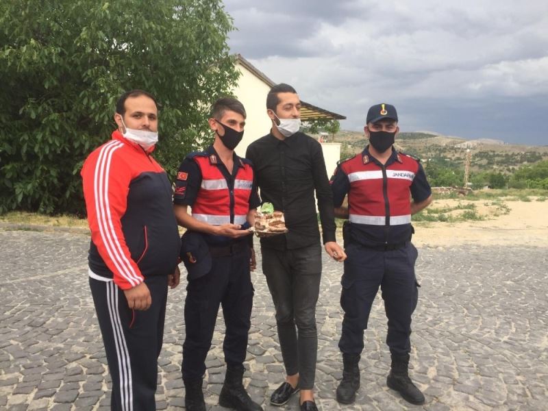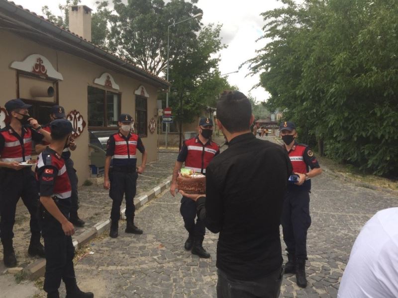 Jandarma ekipleri de , kutlama pastasını keserek teşekkür etti.