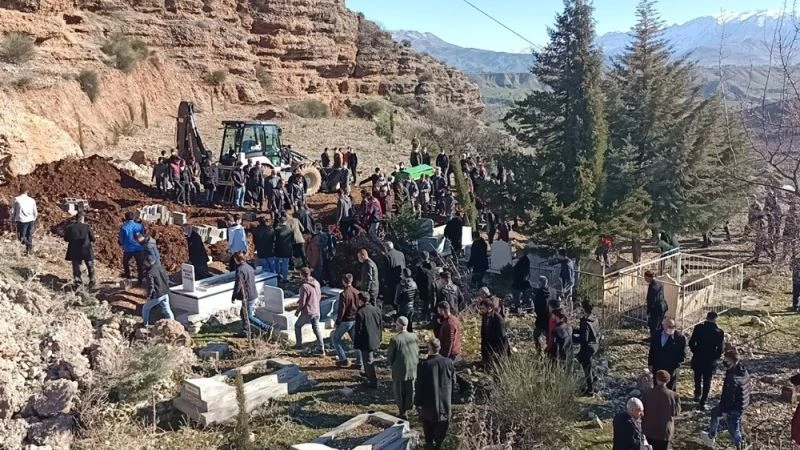 Geniş güvenlik önlemi altında köy mezarlığına getirilen cenazeler kılınan cenaze namazının ardından gözyaşları arasında toprağa verildi.