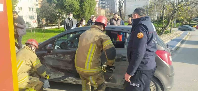 Bursa’da kavşakta ilerleyen otomobile, hafif ticari araç çarptı. Kazada iki araçta sıkışan sürücü itfaiye ve sağlık ekipleri tarafından çıkarıldı.