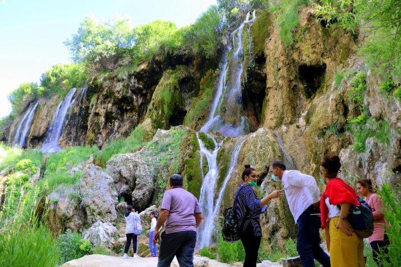 Erzincan’da termometreler 36 dereceyi gösterirken vatandaşlar kavurucu sıcaklarda Girlevik Şelalesinde serinliyor.