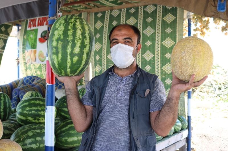 Korona virüs tedbirlerini alarak 47 derece sıcaklıkta, tozun altında bu işi yaptığını kaydeden Cınaklı, "Çalışmazsak olmaz, Elimden geldiği kadar iyi karpuz getiriyorum. Çünkü çevre yoludur, giden geri gelemez. Bu yüzden kötü mal satmak istemiyorum. 47 derece sıcak altındayım, para kazanmak da zordur. Sabah kalk akşama kadar müşterilerle uğraş, karpuzdur, tezgahı düzelt, ağırdır işimiz yani. Tek kişi çalışıyorum burada, çok zahmetli. Satışlarımız da geçtiğimiz yıl gibi, herhangi bir değişiklik yok. Fiyatlar artış olsa da kazandığımız aynıdır" diye konuştu.