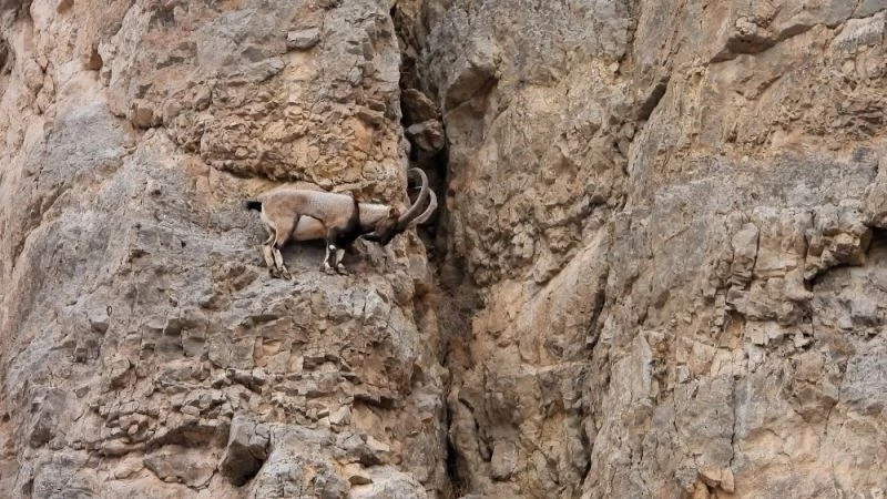 Gümüşhane dağlarının süsü olarak nitelendirilen, kayaların usta tırmanıcıları olan Yaban Keçileri’nin sarp kayalıklardaki müthiş hünerleri kameralara yansıdı.