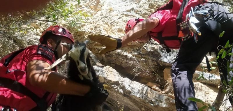 Erzincan’ın Kemah ilçesinde kayalıklarda mahsur kalan 11 keçi, İl Afet ve Acil Durum Müdürlüğü (AFAD) ekiplerince kurtarıldı.