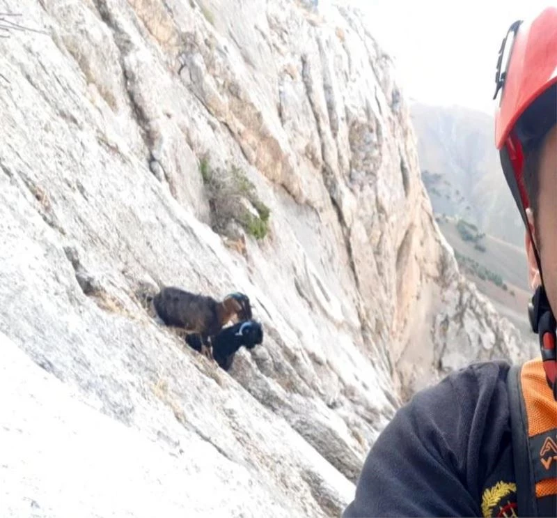 Kahramanmaraş’ta kayalıklarda mahsur kalan keçiler 4 saatlik çalışmayla kurtarıldı.