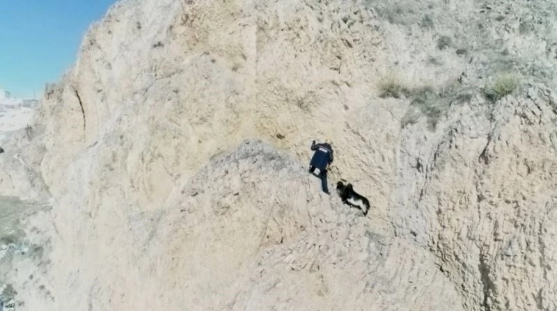 Erzincan merkeze 108 kilometre uzaklıkta bulunan Beğendik köyünde sürüden ayrılan 4 keçi, çıktıkları kayalıklarda mahsur kaldı.