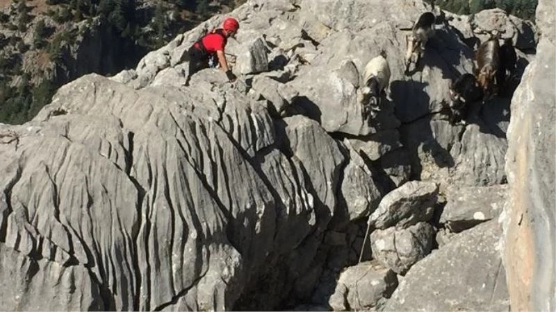 Kahramanmaraş’ın Andırın ilçesinde 5 gündür kayalıklarda mahsur kalan 7 keçiyi jandarma kurtardı.