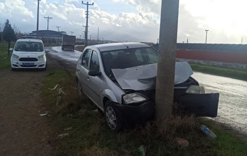 Kaygan zeminde kontrolden çıkan araç direğe çarptı