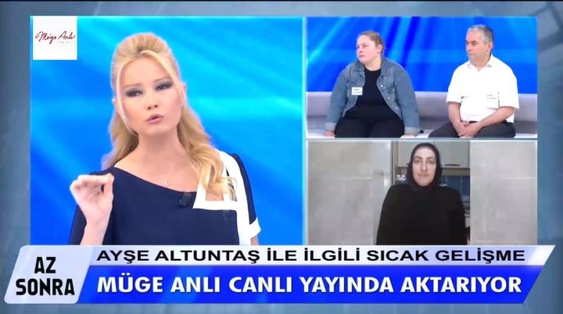 Araştırmacı-Gazeteci Müge Anlı, 18 Temmuz 2019 günü Gaziosmanpaşa’daki evinden çıktıktan sonra kayıplara karışan Ayşe Altuntaş’ın akıbetinin peşindeydi. Anlı, 49 yaşındaki kadının kaybolduğu gün en son hem kuzeni hem de sevgilisi olan M.T. ile görüştüğünü ve o andan sonra kaybolduğunu ortaya çıkarmıştı.