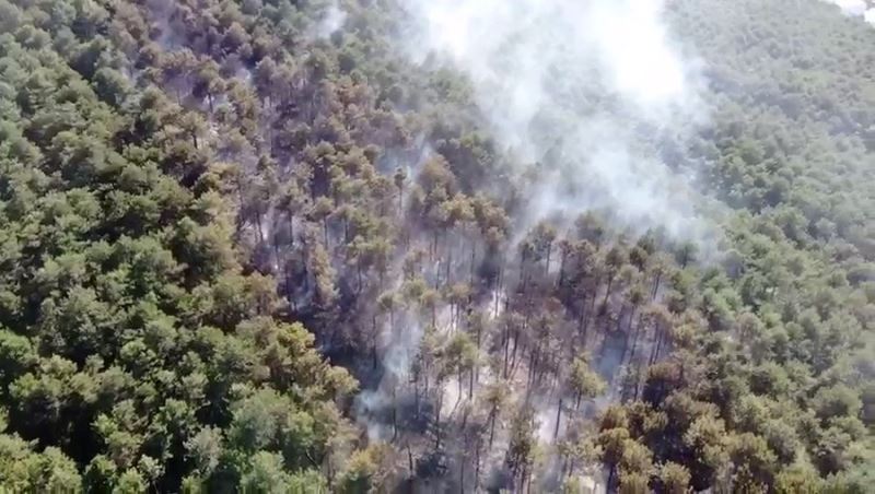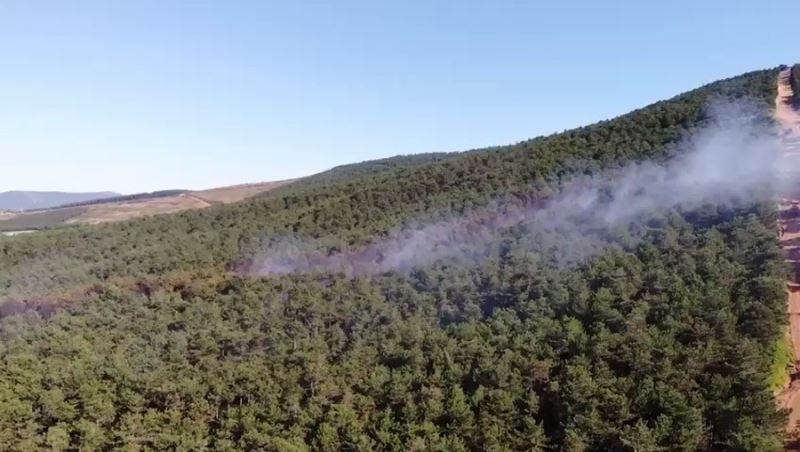 Ormanlık alanda çıkan yangın kısa sürede büyük bir alana sirayet etti. Yangına çok sayıda itfaiye ekibi müdahale ederken, yangın helikopteri de havadan destek verdi. Ormanlık alanda çıkan yangın havadan görüntülendi.