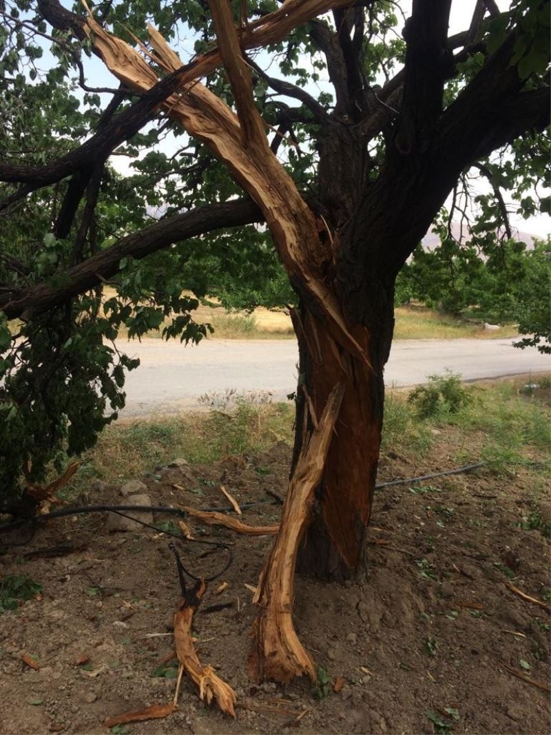 Malatya’nın Darende İlçesi’nde kayısı bahçesine düşen yıldırım bazı ağaçlara zarar verdi.