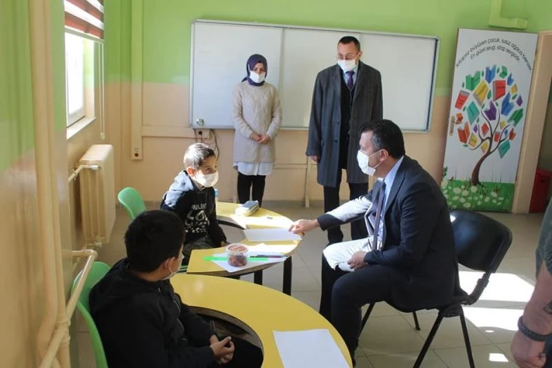 Çıldır İlkokulu, Şehit Taner Karadeniz Ortaokulu ve Aşık Şenlik İlkokulundaki özel eğitim sınıflarını ziyaret eden Kaymakam Bayram öğrencilerle sohbet ederek, öğretmenlerinden eğitimleri konusunda bilgi aldı.
