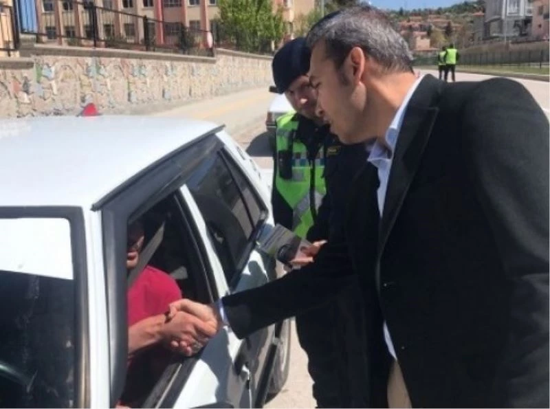 Trafik denetimi sırasında gerçekleştirilen etkinlikte, Kaymakam Hasan Çiçek ile birlikte Emniyet ve Jandarma personeli tarafından vatandaşlara ve sürücülere trafik kuralları ile ilgili bilgiler verildi, broşür dağıtıldı.